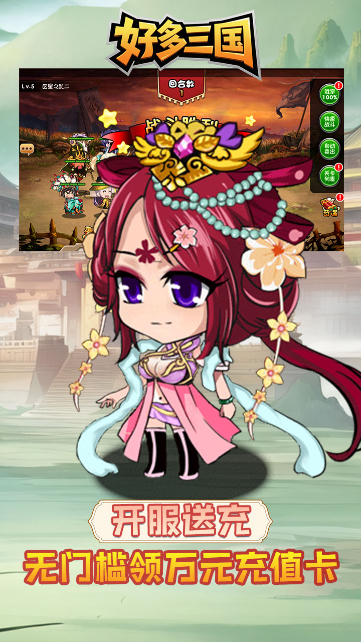 4:轻松打造无敌阵容:凭借海量福利,轻松培养武将、打造顶级装备,组建称霸三国的无敌阵容。叫上好友一起玩,并肩作战,在三国世界大杀四方!