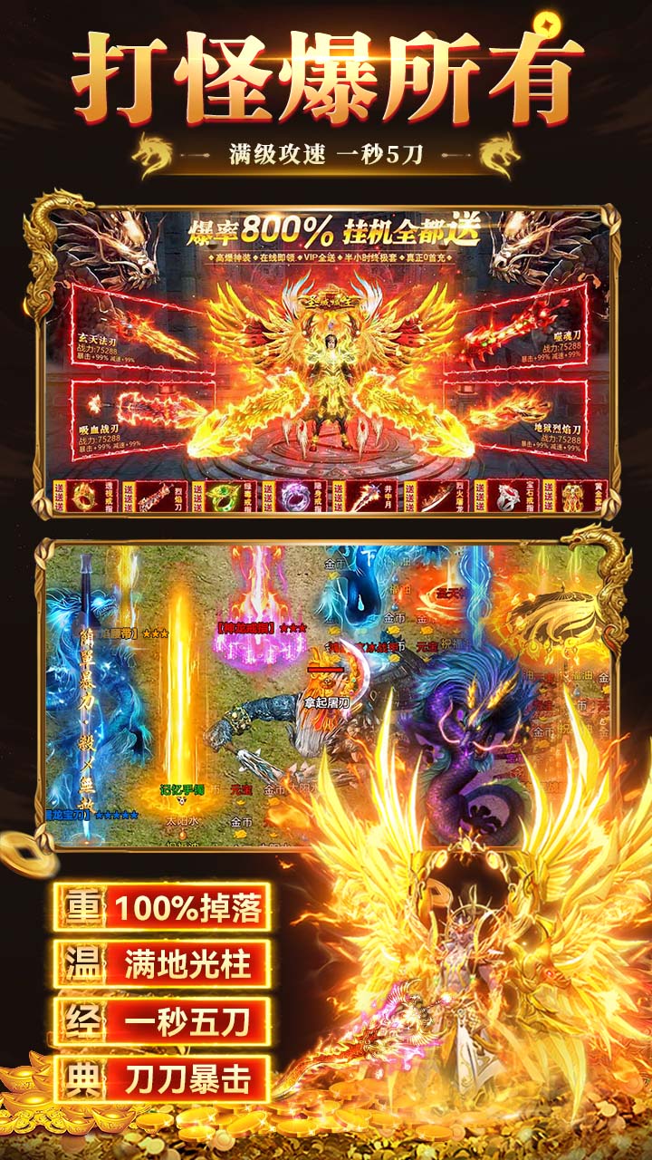 3. 超高爆率:打怪狂送千万货币,所有神装均可爆